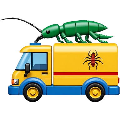 Dribble’s roach-shaped exterminators moving truck Lego emoji