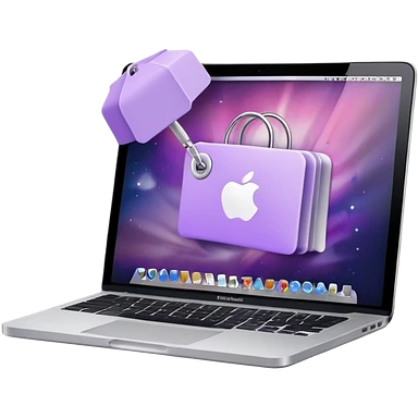 Discount tag with macbook ios light violet elements. emoji