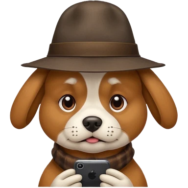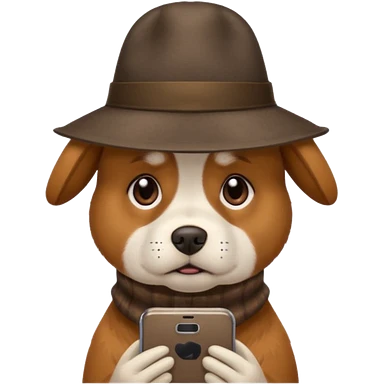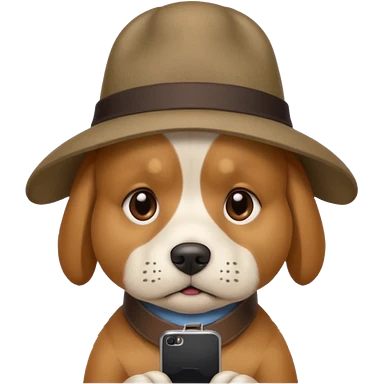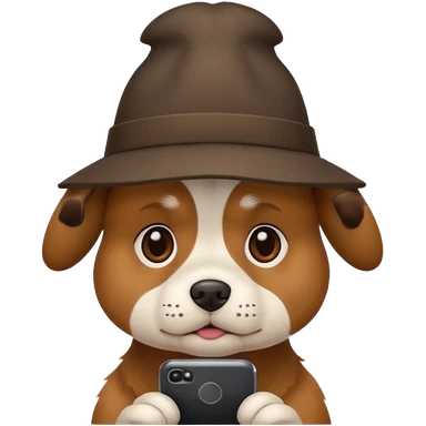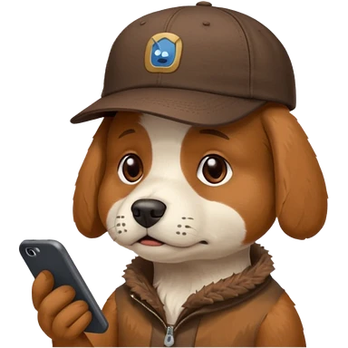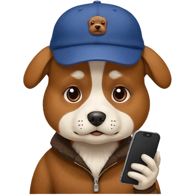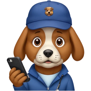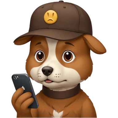 dog with a DeGould branded cap who is sad at his mobile phone emoji