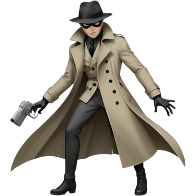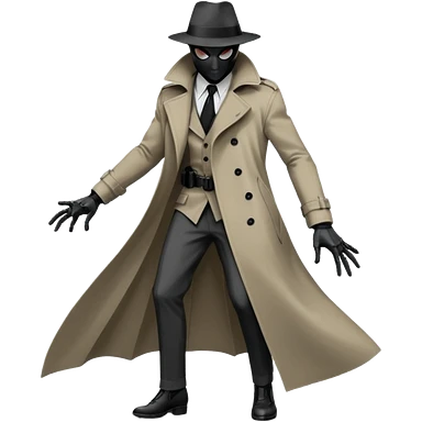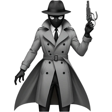Die-cut sticker of Spider-Noir, monochrome black and grey palette, trench coat fluttering, 1940s detective aesthetic. Sharp edges, heavy shadows, white border, isolated on white background, high detail. emoji