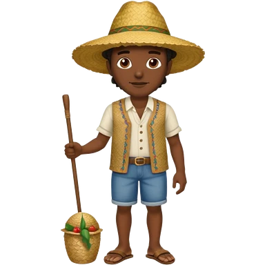 Gars Créole réunionnais ti jean chapeau paille savate au pieds emoji