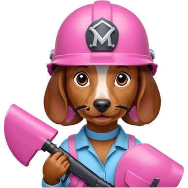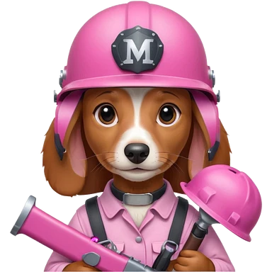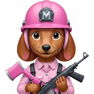 Dachshund dog (Girly one) holding pink m16 and helmet emoji