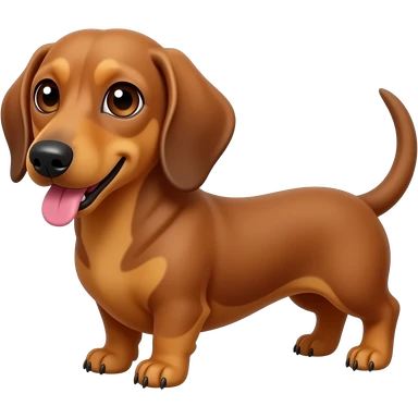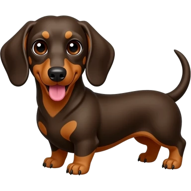 Dachshund with brown eyes, pink tounge with a black dot on it and a black nose emoji