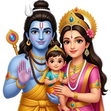 Shiv parvati lovely child look with background of snow hills emoji