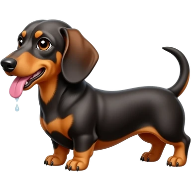 Dachshund with brown eyes, pink tounge with a black dot on it and a black nose emoji