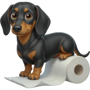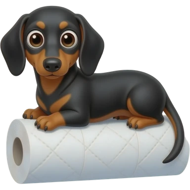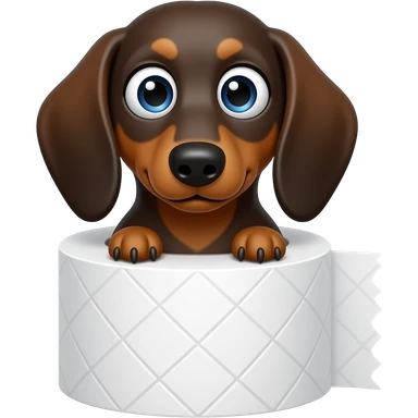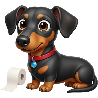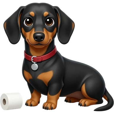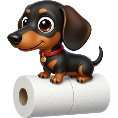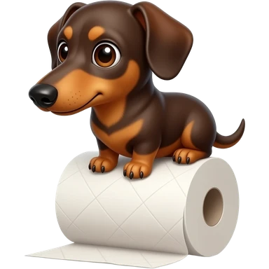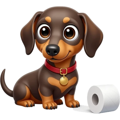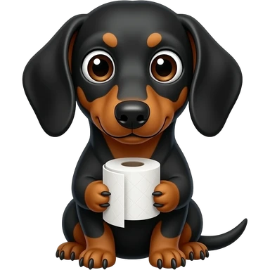 whimsical sitting dachshund wide eyes full body holding a toilet paper emoji