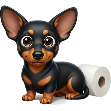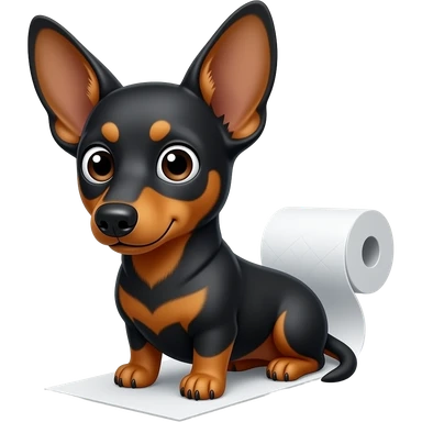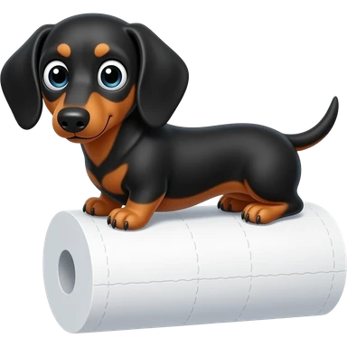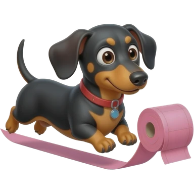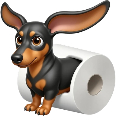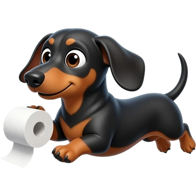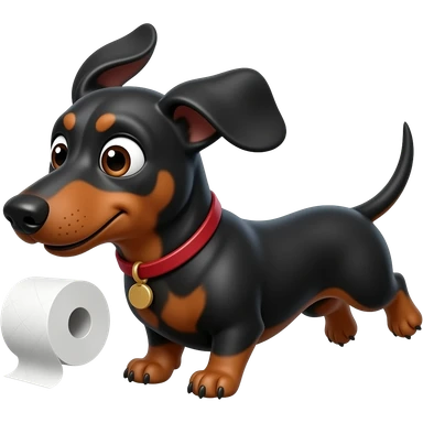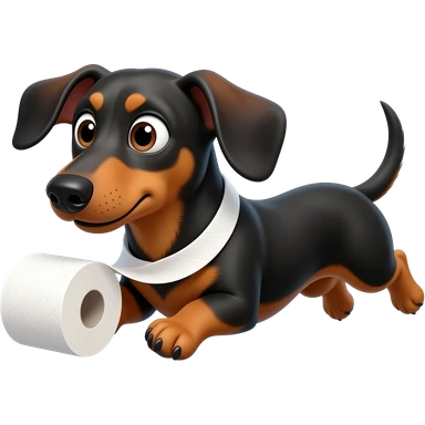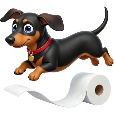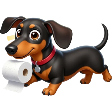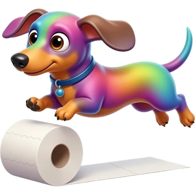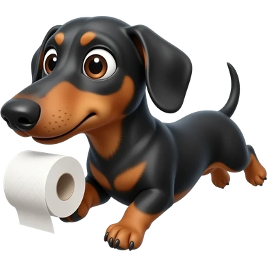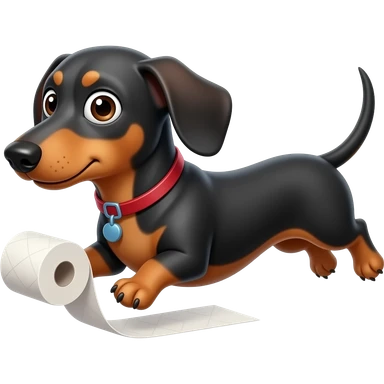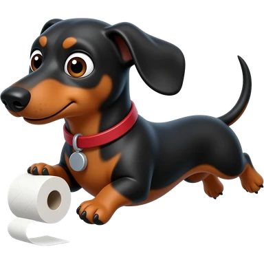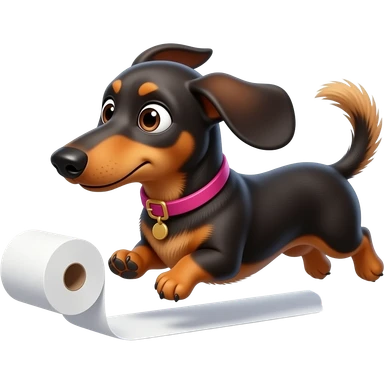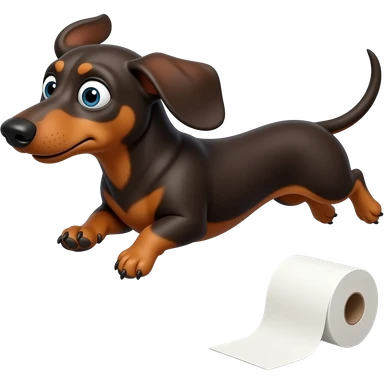 whimsical dachshund wide eyes full body chasing toilet paper emoji