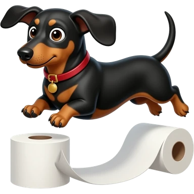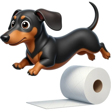 whimsical dachshund wide eyes full body jumping over toilet paper emoji