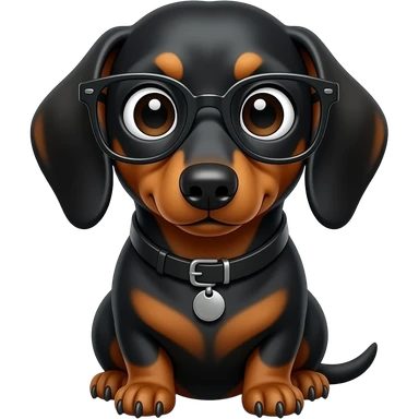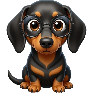 whimsical sitting dachshund wide eyes full body with eye glasses emoji