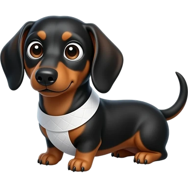 Cinematic Comical black and tan Dachshund Portrait Emoji, Head tilted dramatically with an exaggeratedly amused expression, featuring a sleek black and tan coat with a vibrant sheen, wide, expressive brown eyes filled with playful disbelief, Simplified yet hilariously expressive features, highly detailed, glowing with a slightly sassy glow, high shine, dramatic yet playful, stylized with an air of cheeky humor, bright and endearing, soft glowing outline, capturing the essence of a spirited and over-the-top companion, so meme-worthy it feels like it could side-eye its way into internet fame instantly! emoji