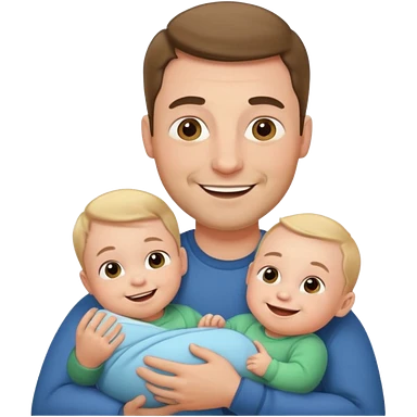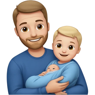 dad with short brown hair and fair skin with newborn baby holding emoji