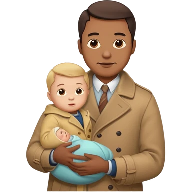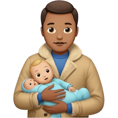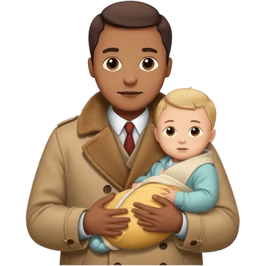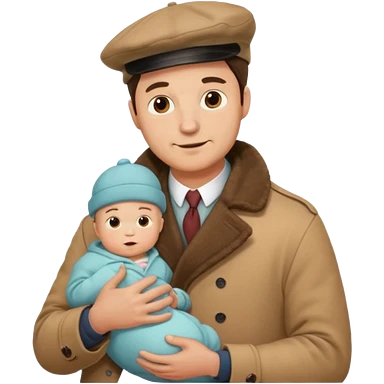 a mustache dad wearing vintage clothes with vintage coat holding his baby emoji