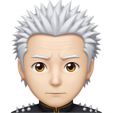 Crea un emoji de Satoru Gojo un hombre de tés blanca sonriendo con ojos azules cristalinos pelo blanco pero que se vea joven y pestañas blancas y su ropa sea una camisa negra pero plana ósea como un suéter y dos botones amarillos y que solo salga de sus hombros asta arriba emoji