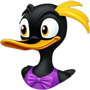 A Duffy Duck (like the one in the cartoon), dressed in a formal suit, using a computer to trade stocks with many monitors emoji