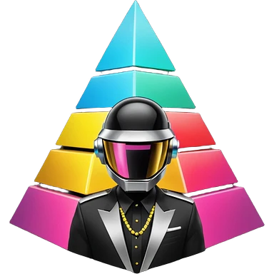 Scène Alive des daft punk en forme de pyramide illuminée et colorée. emoji