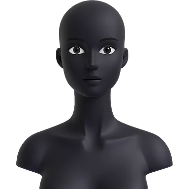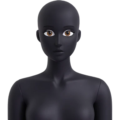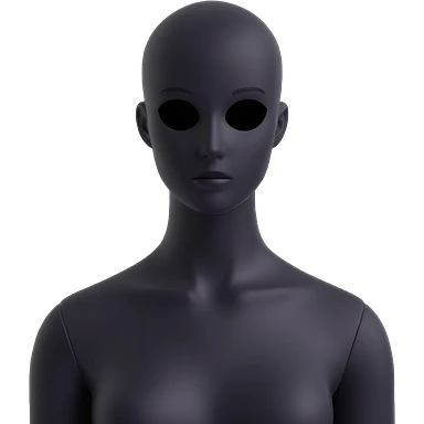 Matte black mannequin in the style of a default avatar. Monochrome with no lines. Minimalistic flat vector icon, iOS style, thin black contour on white. Completely black eyes are not just pupils emoji