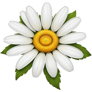 daisy flower, top view, apple style emoji, with subtle green leaves peeking out emoji