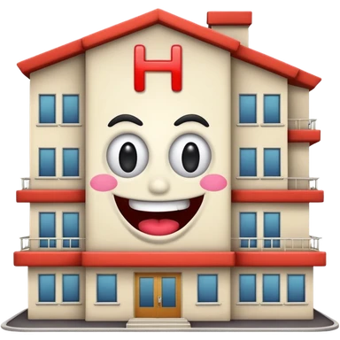 dessiner un batiment Hotel, met une pancarte "H", rajoute un visage (yeux et bouche)de fou emoji