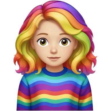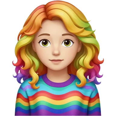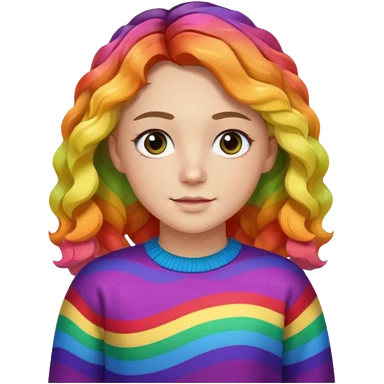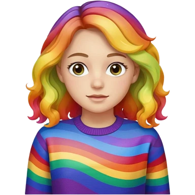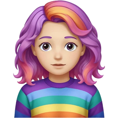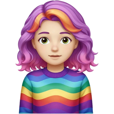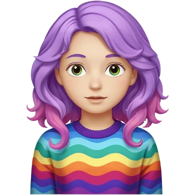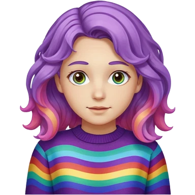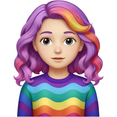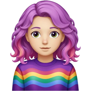Lila renkli dalgalı saç beyaz tenrengi hafif çekik gözlü uzun kollu gökkuşağı swit emoji