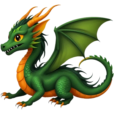 Black, green, orange, grey, Asian noodle-dragon, with black sclera, long mane, long whiskers, long tail, gliding flying, no wings emoji