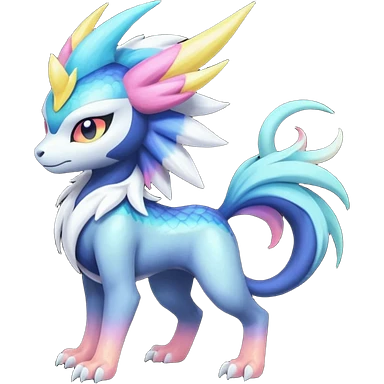 Shiny Draconic Sunny furry neon colorful scaly painted Asian pastel-gradient Absol-Meloetta-Solgaleo-Luxray-Suicune-fusion emoji