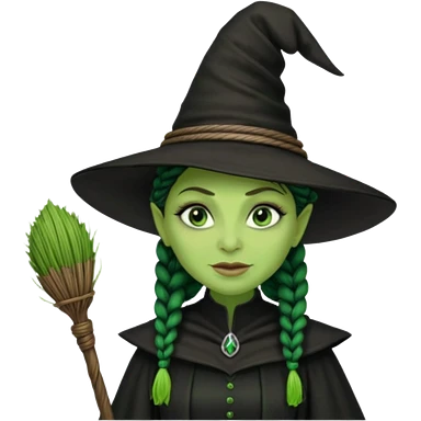 elphaba the wicked witch from wicked movie (cynthia erivo) microbraid hair, witch hat, broom emoji