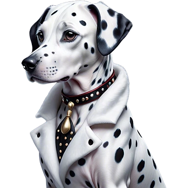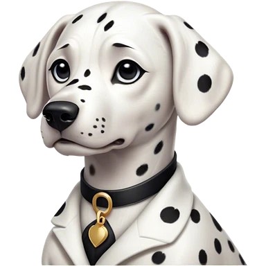 Cinematic Noble Dalmatian Portrait Emoji, Poised and regal, with a lean, athletic build and a glossy white coat adorned with distinctive black spots, deep-set soulful dark eyes, Simplified yet sharp and sophisticated features, highly detailed, glowing with a soft, dignified glow, high shine, intelligent and alert, stylized with an air of elegance, focused and attentive, soft glowing outline, capturing the essence of a watchful and confident companion, so majestic it feels as though it could dash out of the screen with effortless authority! emoji