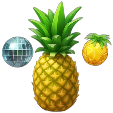 a pineapple, a robot, and a disco ball into a single, unique character. The emoji should convey a sense of futuristic tropical dance party vibes. emoji