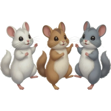chinchilla3 fluffy chinchillas dancing on two legs, beautiful, fluffy chinchillas, white, brown, and gray chinchillas emoji