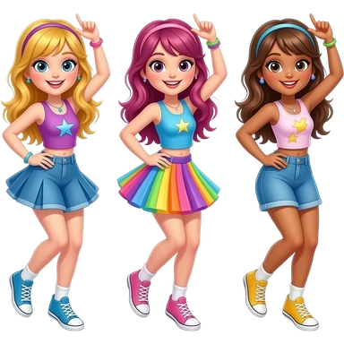Dancing girls 1 with brown long hair 2 with brown short hair and 1 with short gray hair emoji
