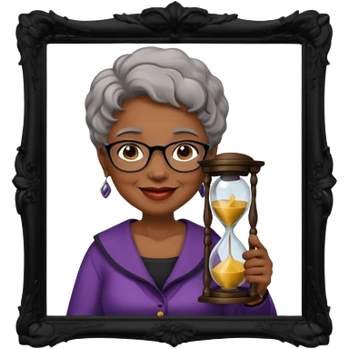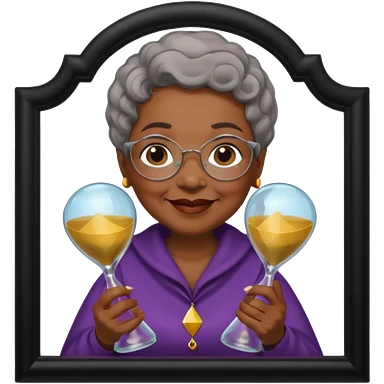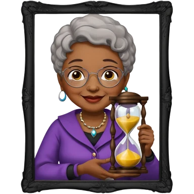 black grandma holding hourglass in a frame emoji
