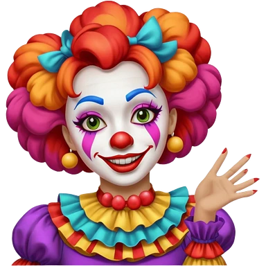 Espresso/blonde woman, dressed as a clown also dancing provocatively with a mic emoji
