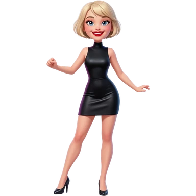 dancing woman in the club in black bodycon sleeveless turtleneck mini dress blonde big hair red lipstick smile emoji | AI Emoji Generator