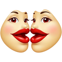 Una pareja joven y las dos son jóvenes ,se están dando un beso las dos son blancas y una con pelo lacio y abajo ruso y la otra con el pelo rizo pero para abajo emoji