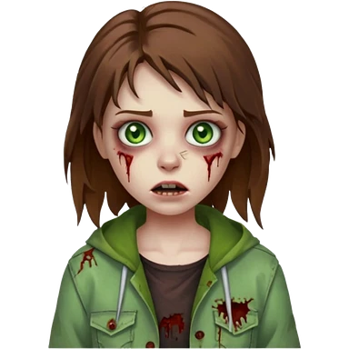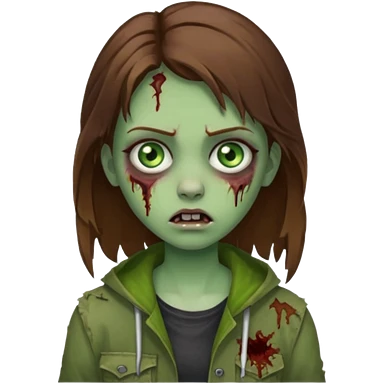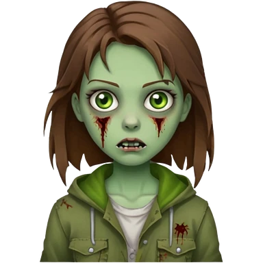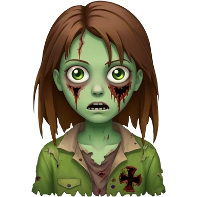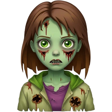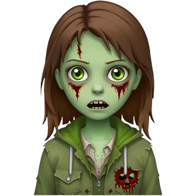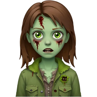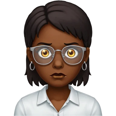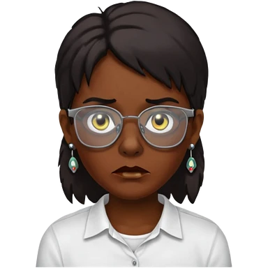 A zombie wearing a white shirt, dark skin, medium-length dark hair, earrings, and glasses, on a white background, facing forward. emoji