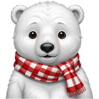 baby polar bear wearing a red and white checkered scarf emoji