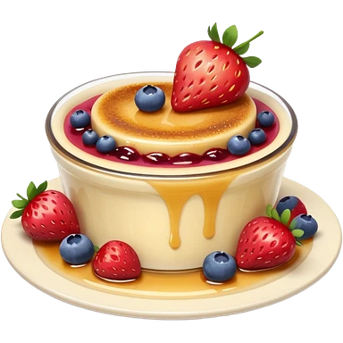 Crème brûlée with strawberries and blueberries on top emoji