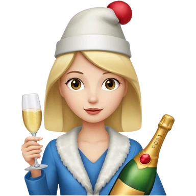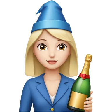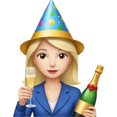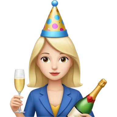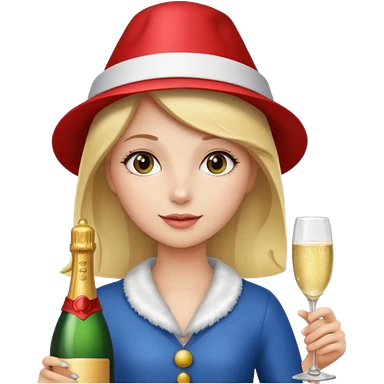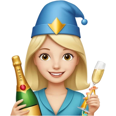 girl with Champagne bottle with party cap, only holding bottle. emoji