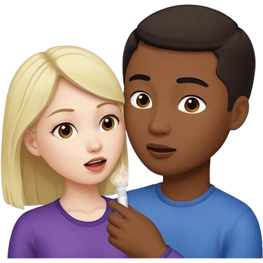 Nude light-skinned female giving fellatio to darker-skinned asian male emoji