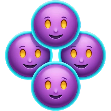 emoji icon of three glowing orbs connected by light beams forming unity, neon purple and cyan lights, dark futuristic background, 1:1 emoji