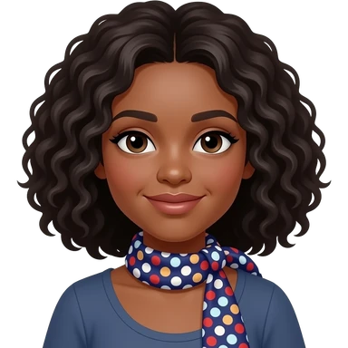 Dark-skinned woman with smooth skin, full lips, almond-shaped eyes, slightly hooded eyelids, defined natural brows, small rounded nose, soft cheek structure, oval-round face, neat small braids with curly ends framing the face. emoji