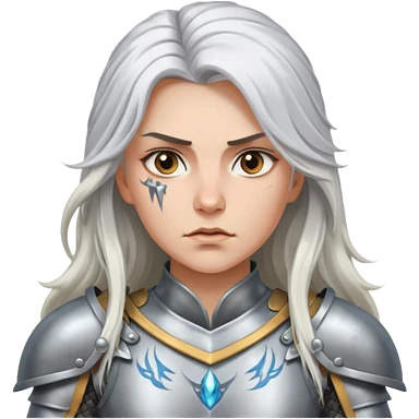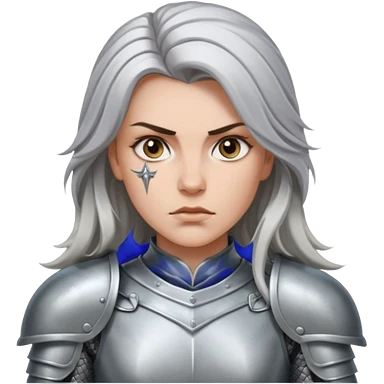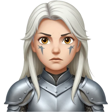 White Long Haired Women, Warrior woman — silver armor, piercing gaze emoji