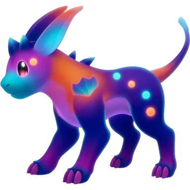 Colorful bioluminescent dark abysmal abyssal neon-glowing Trico-Sergal-Furret-Ferret-Wickerbeast-Vernid-fusion-Fakemon-animal-hybrid-creature, full body emoji