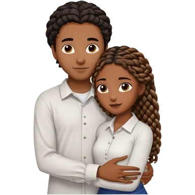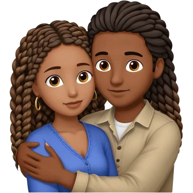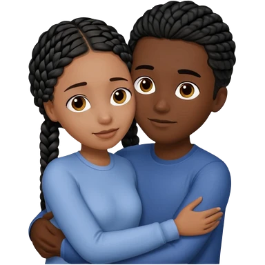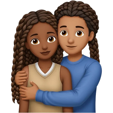dark skin, black girl with black and brown braids, hugging her middle eastern boyfriend with wavy straight brown hair and medium to light skin emoji
