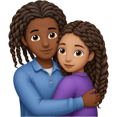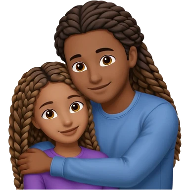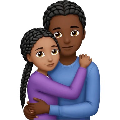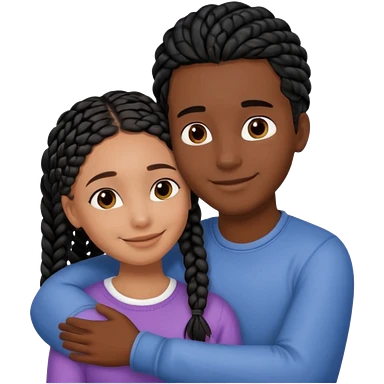 dark skin, black girl with black and brown braids, hugging her middle eastern boyfriend with brown hair and medium to light skin emoji