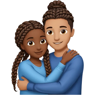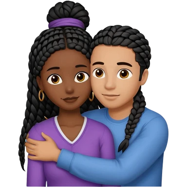 dark, black girl with black braids hugging her white italian boyfriend with straight parted brown hair emoji