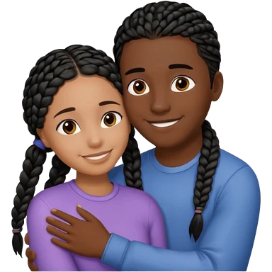 Dark black girl with black braids, smiling, and tan white boy with straight brown hair emoji