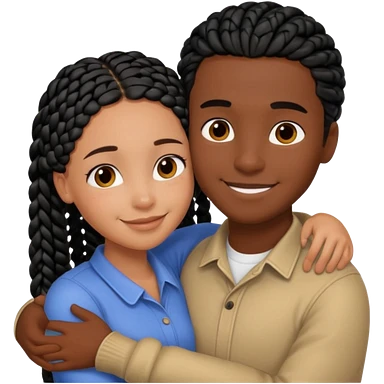 Dark black girl with black braids, smiling, and embracing her tan white boyfriend with straight brown hair emoji