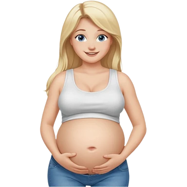 Dark black skin, african black Woman with huge pregnant belly, long hair, yellow bikini, bare midriff, full body, side view, smiling. emoji | AI Emoji Generator