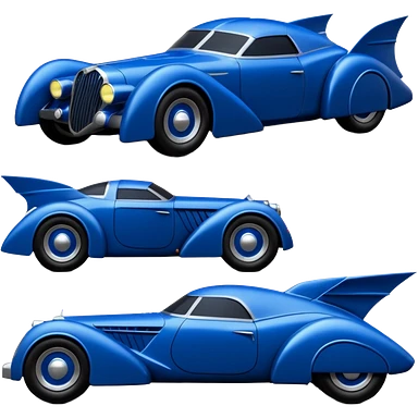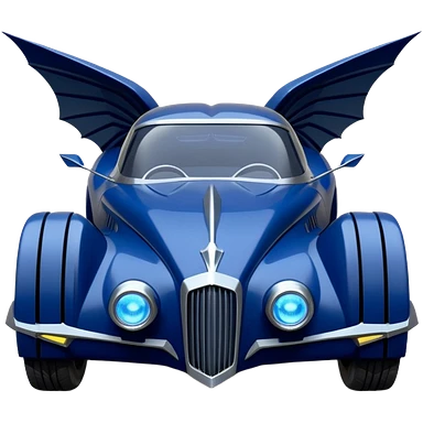 Dark blue Detailed aerodynamic opulent dark knight futuristic concept Catwoman Batgirlmobile loosely based on 1977 Buick coupe roadster racing Lego (flat long straight faceted mechanical body) winged stealthy street hot rod emoji | AI Emoji Generator